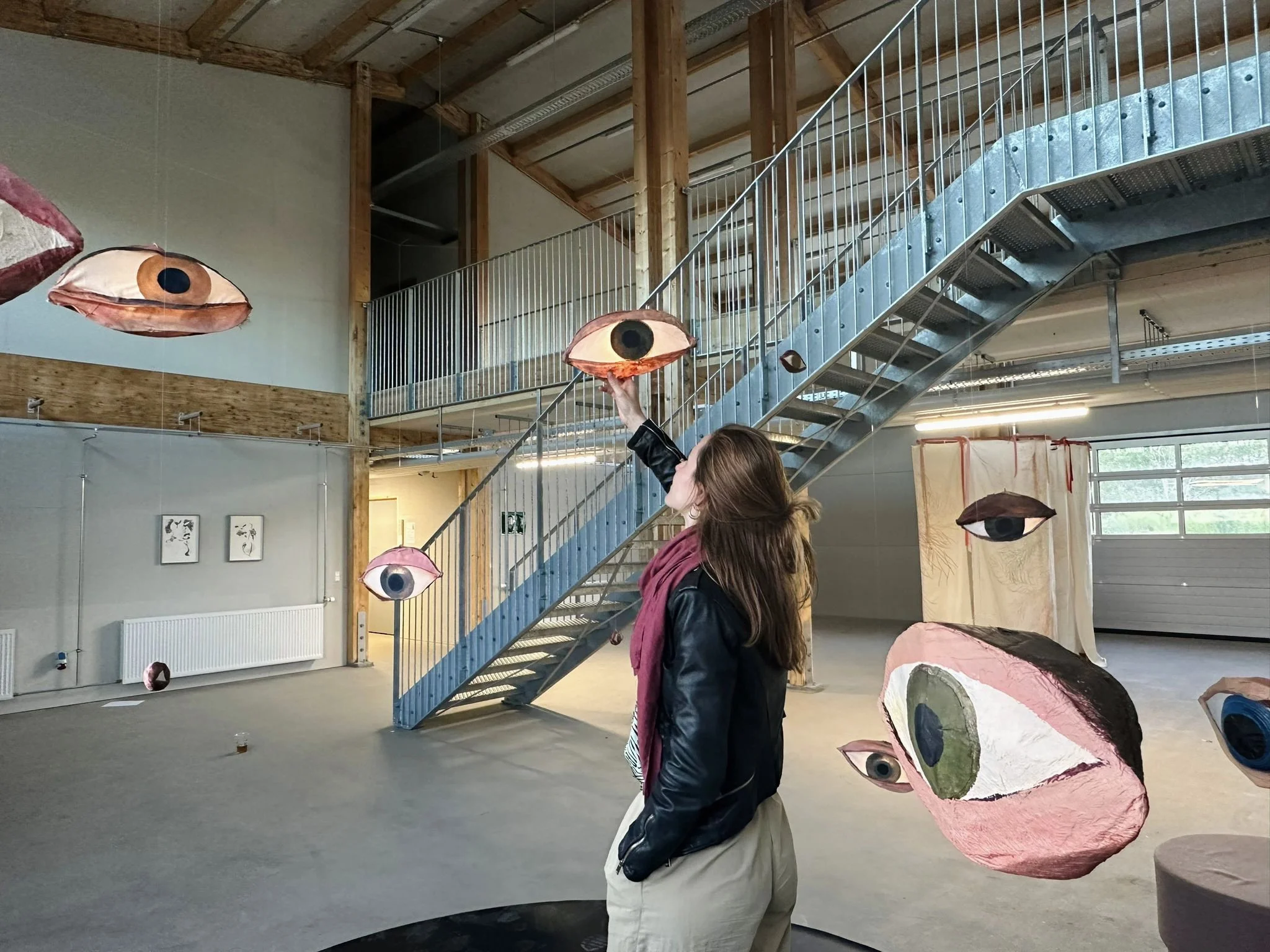 On this roof there is a crystal labyrinth that I encouraged the people to walk through blindly, guided only by the sound of music and touch. At the end of the experience, they removed their blindfolds and were invited to express their emotions through paint on a large white canvas, creating a collective piece.